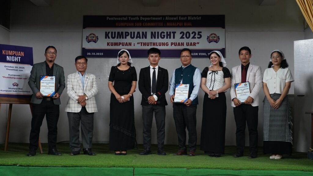 Dt. 20.10.2025 hian Salem Veng, YMA Hall-ah Bial Kumpuan Sub-Committee hma laknain Kumpuan Night hman a ni a. Hemi zan hian Short Film Intihsiakna result puan nghal a ni. Special Guest atan Sis. Rosy Lalramthlengi leh Sis. Lalengzuali te chu sawm an nih bakah, Pentecostal Choir chu a bika zai tura sawm an ni bawk.